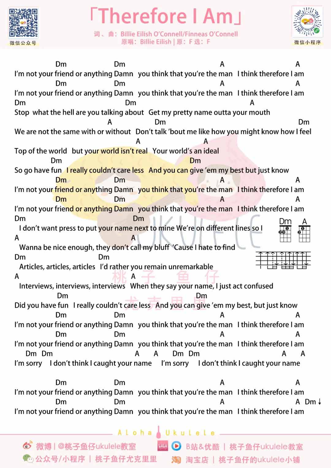 尤克里里Billie Eilish《Therefore I Am》尤克里里谱