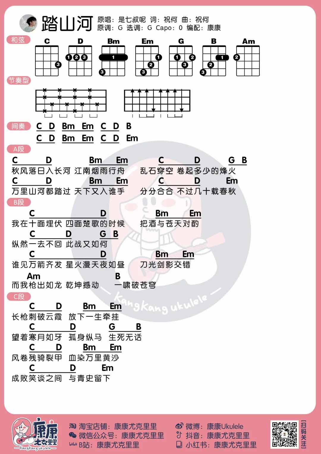 尤克里里是七叔呢《踏山河》尤克里里谱