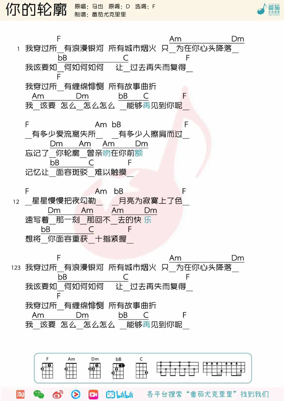 《你的轮廓》尤克里里谱_Ukulele弹唱谱...