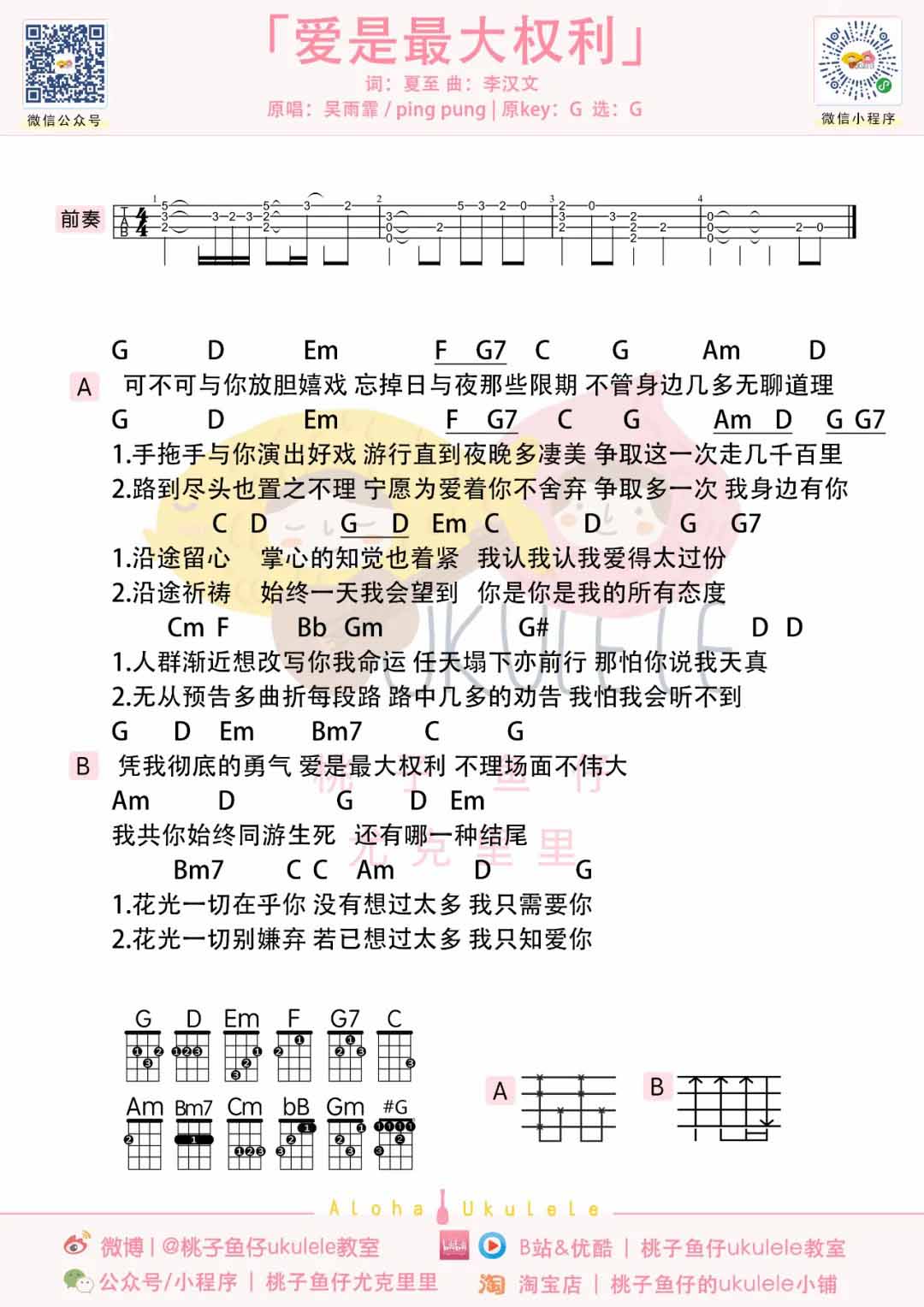 吴雨霏《爱是最大权利》尤克里里谱...