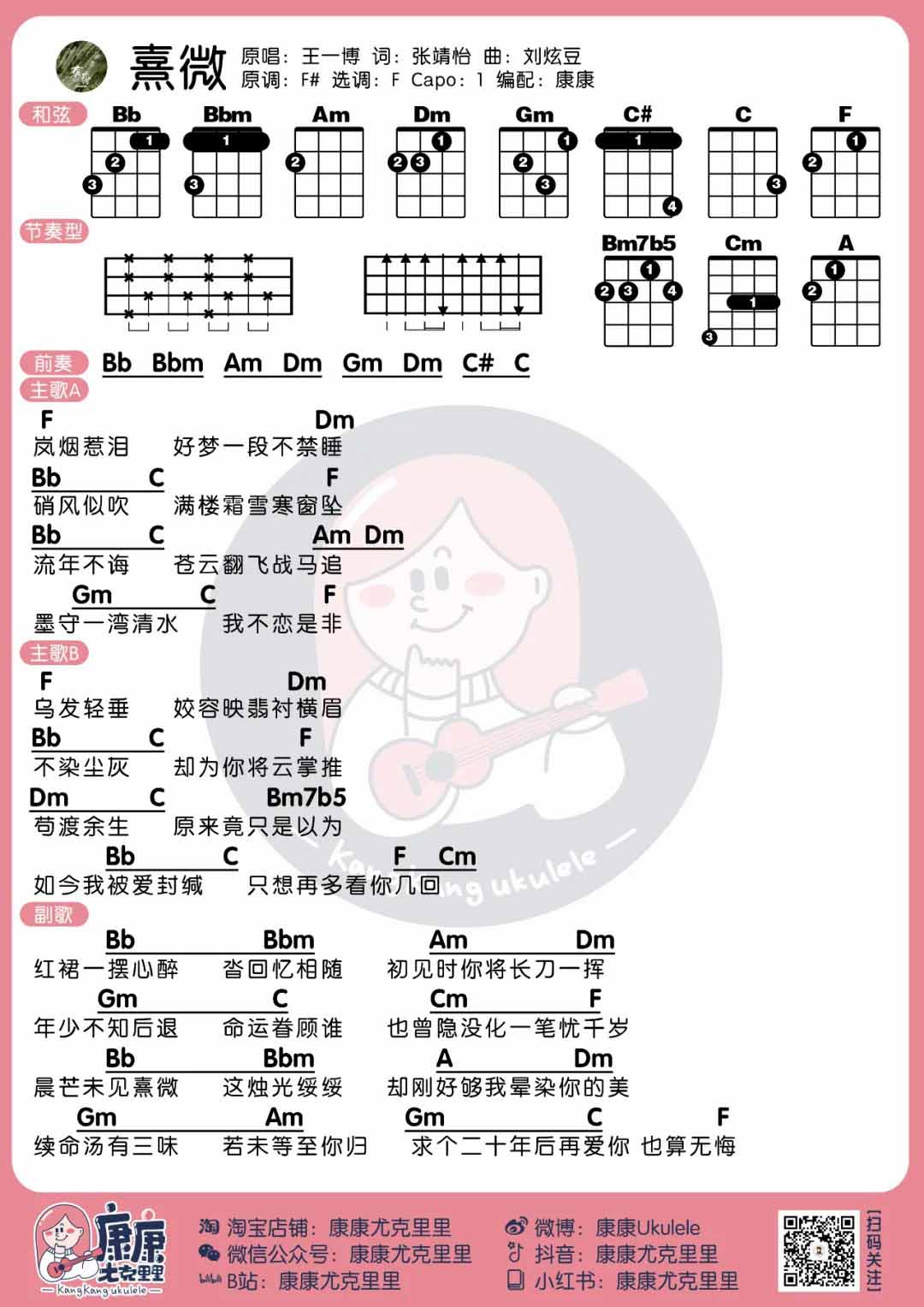 王一博新剧有翡插曲《熹微》尤克里里谱...