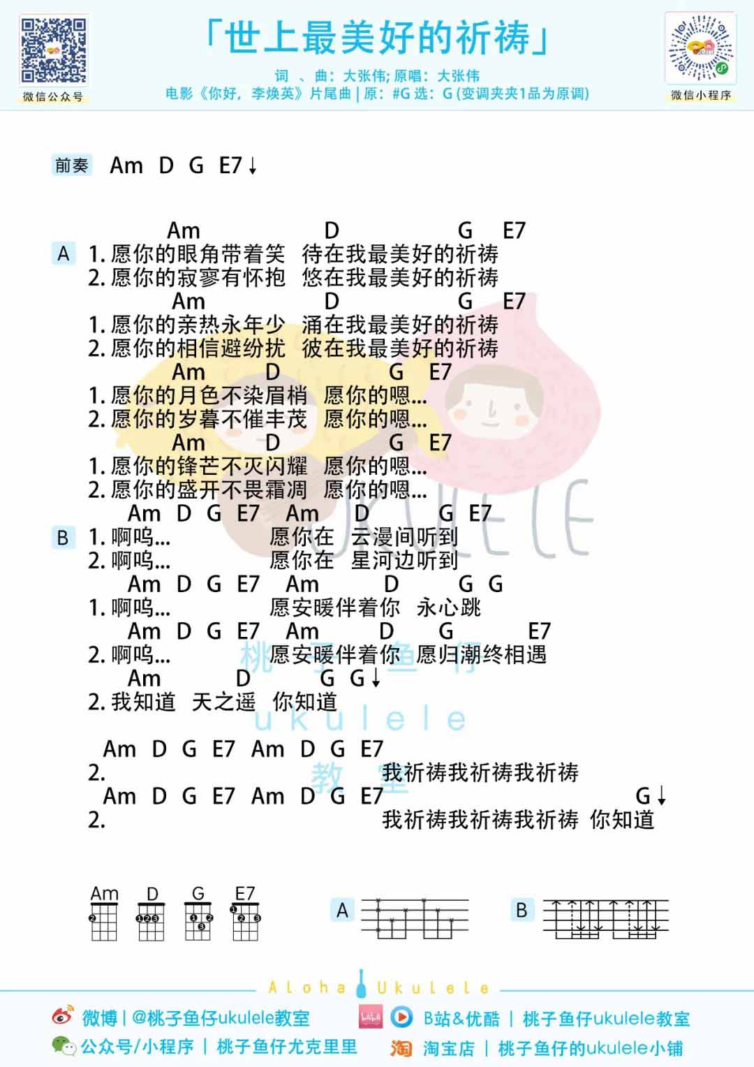 尤克里里《你好,李焕英》片尾曲《世上最美好的祈祷》尤克里里谱