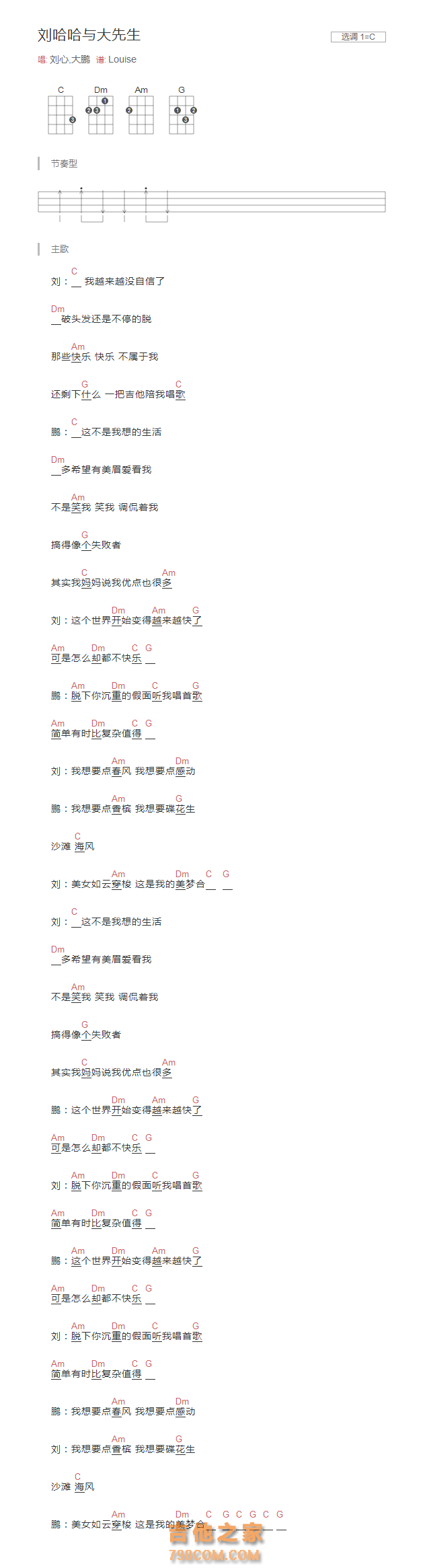 《刘哈哈与大先生》尤克里里谱-C调弹唱谱...