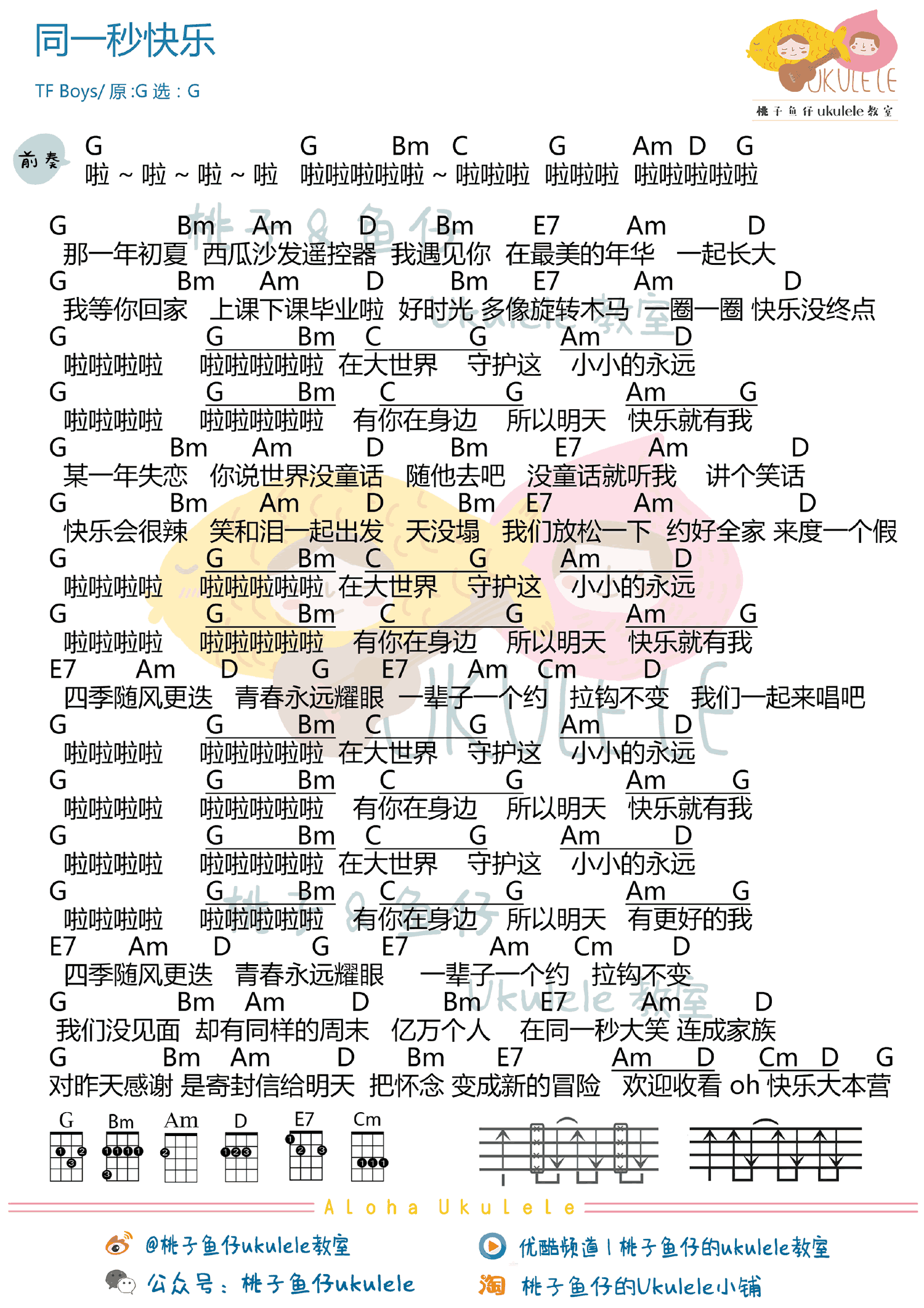 TFBOYS《同一秒快乐》尤克里里-G调弹唱谱...