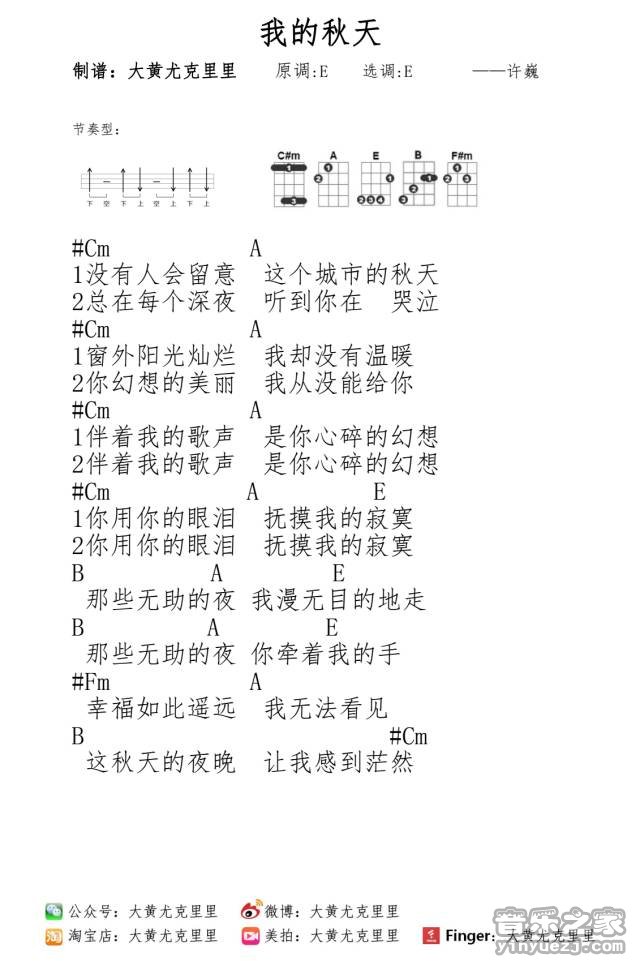 尤克里里许巍《我的秋天》尤克里里-E调弹唱谱