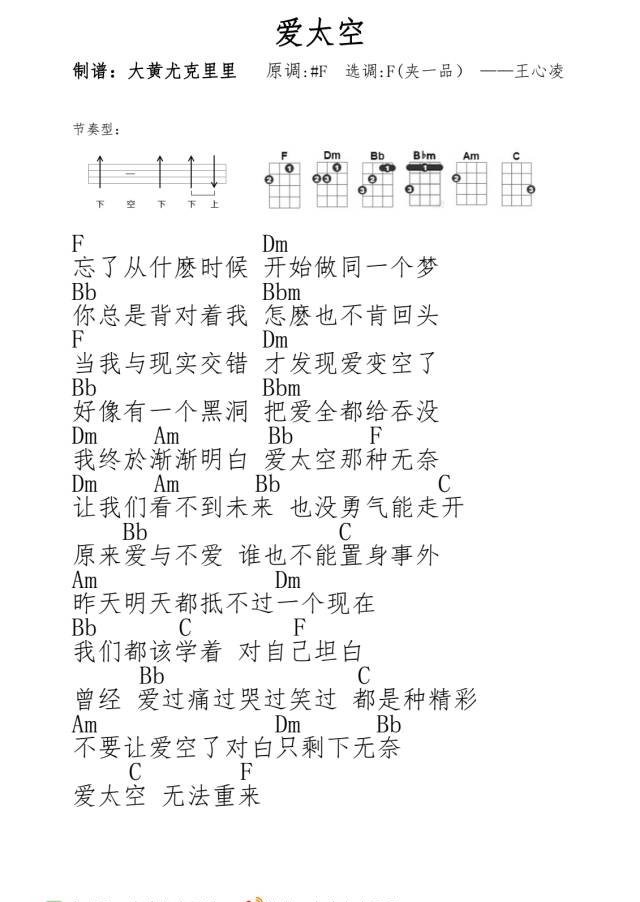尤克里里王心凌《爱太空》尤克里里谱-F调和弦谱