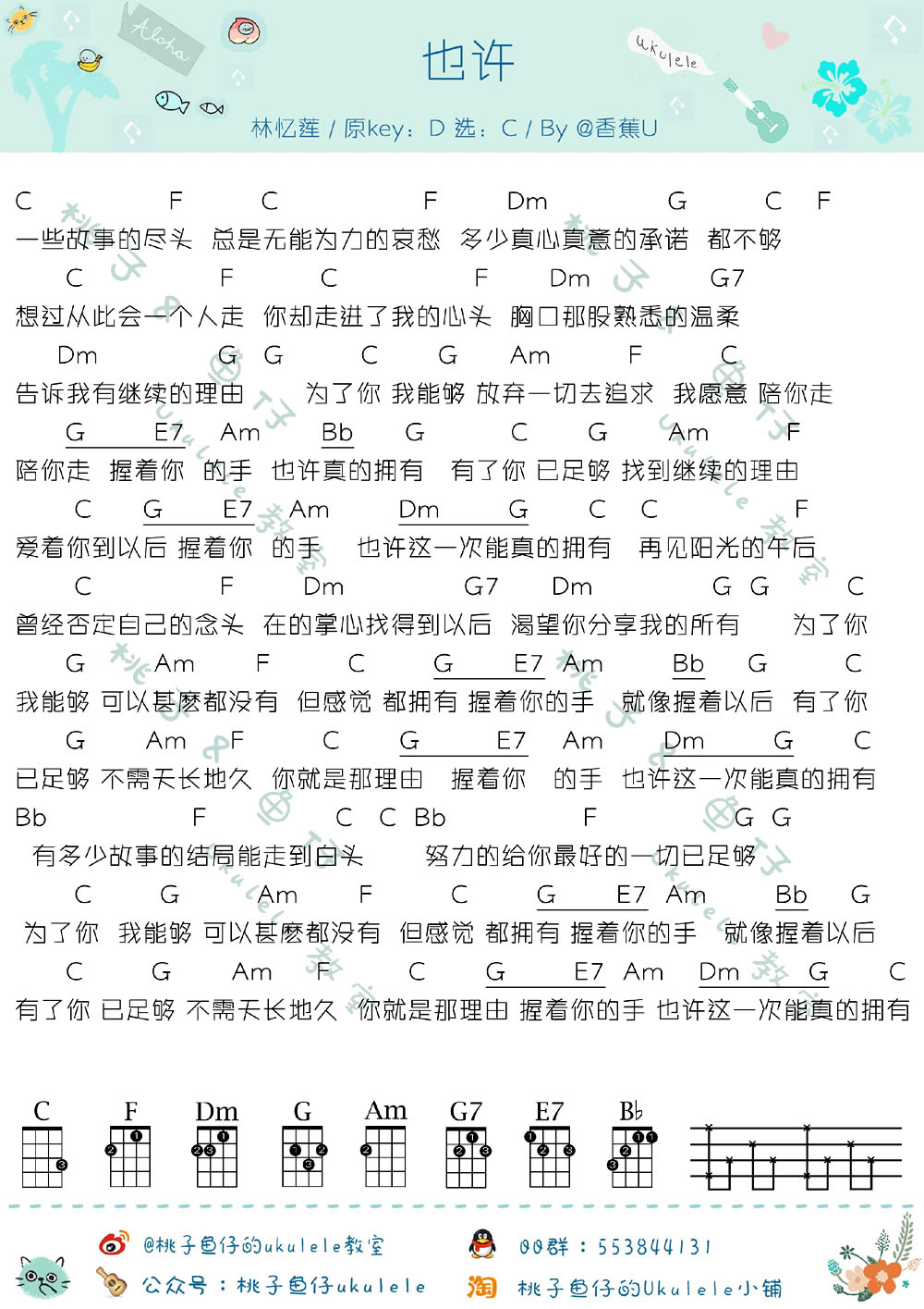 林忆莲《也许》尤克里里谱_C调弹唱谱...