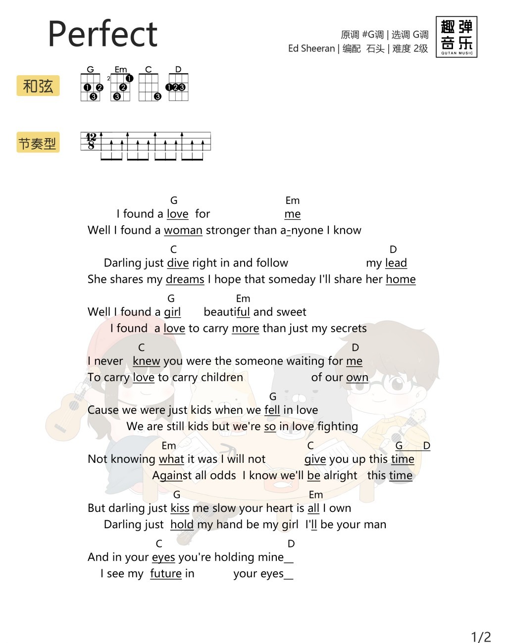 尤克里里邓典《Pefect 》尤克里里谱- G调弹唱版