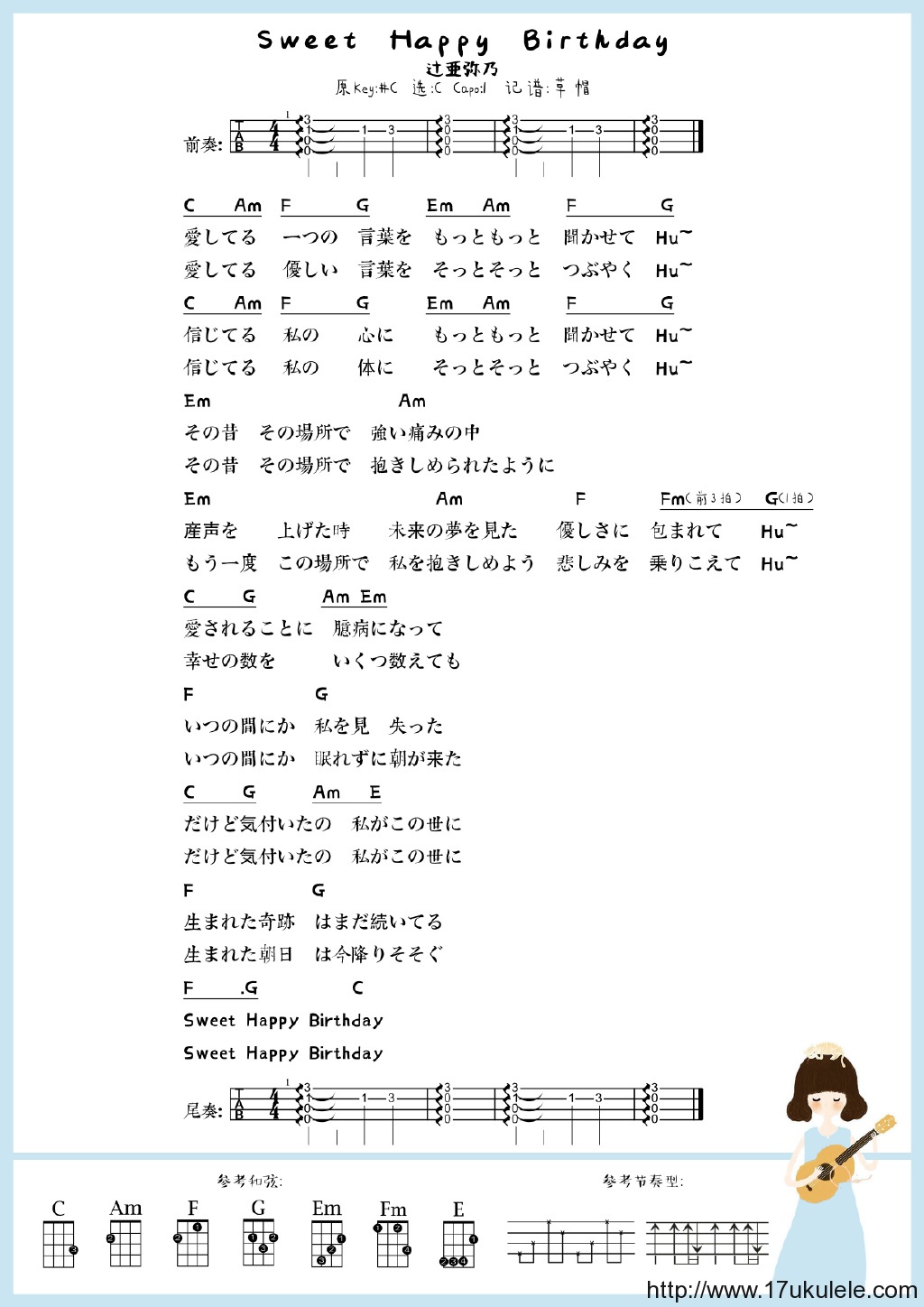 《SweetHappyBirthday》尤克里里谱-C调和弦弹唱谱...