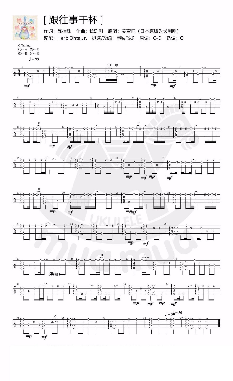 《跟往事干杯》尤克里里谱-C调指弹谱...