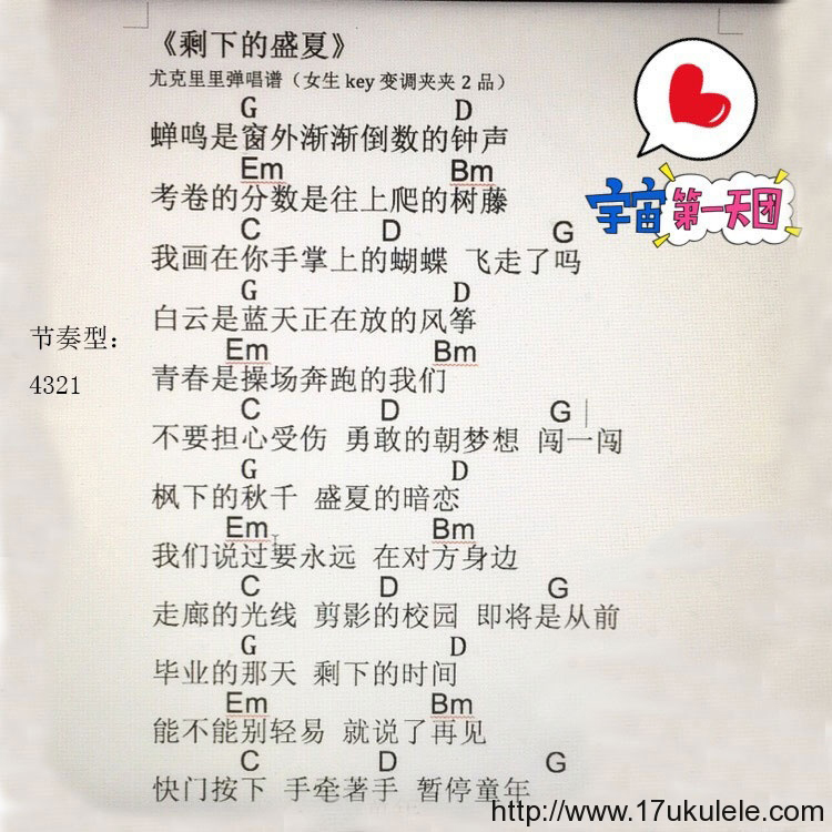 尤克里里TFBOYS《剩下的盛夏》尤克里里-G调弹唱谱