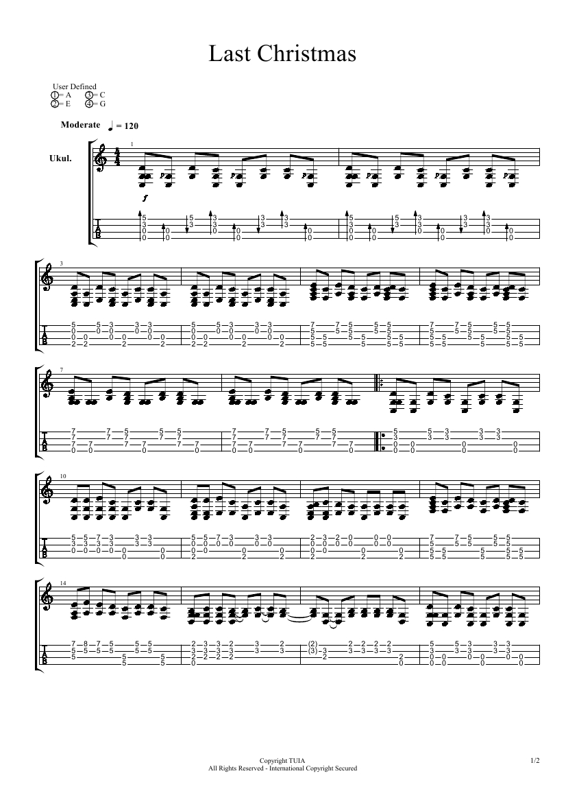 尤克里里郑成河《Last Christmas》尤克里里谱 - C调指弹谱