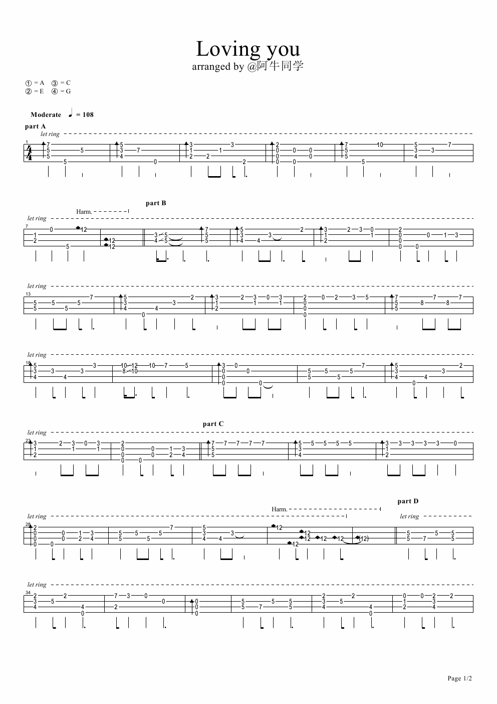 《LovingYou》尤克里里-C调指弹谱...