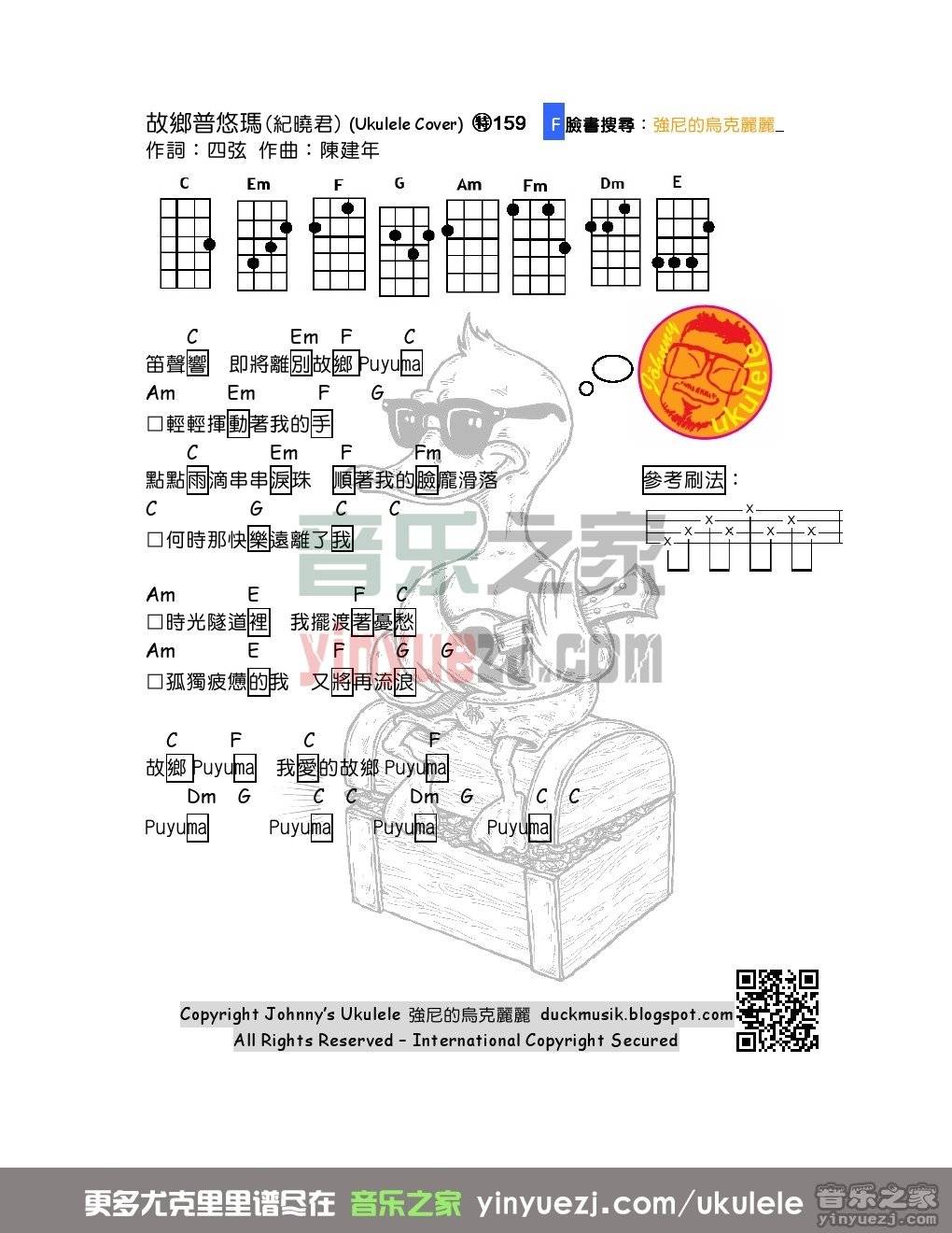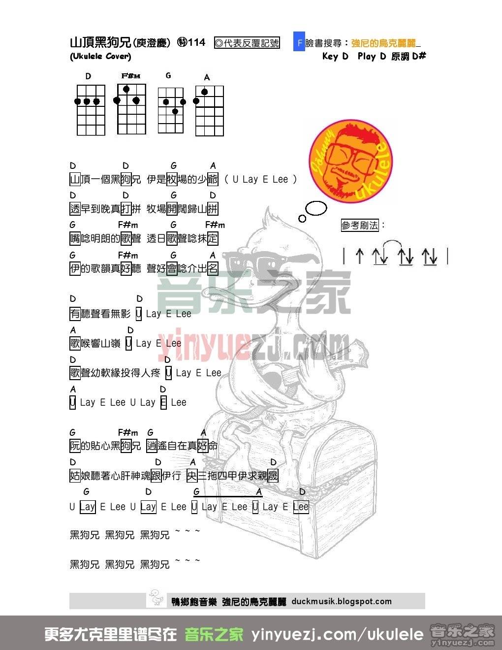 强尼版庾澄庆《山顶黑狗兄》尤克里里谱...