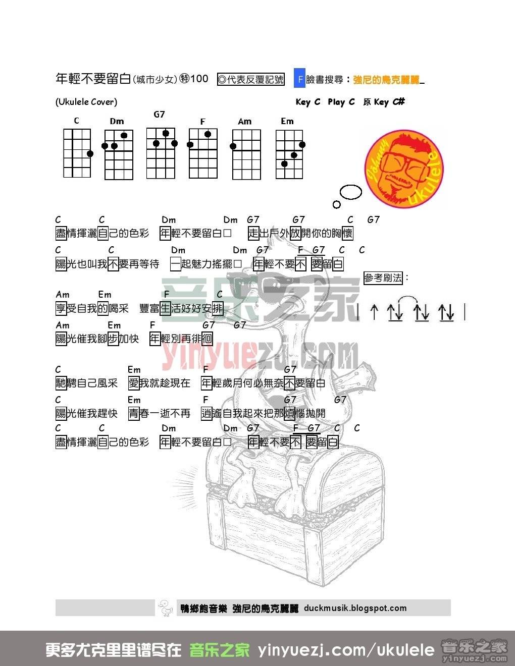 城市少女《年轻不要留白》尤克里里弹唱谱...