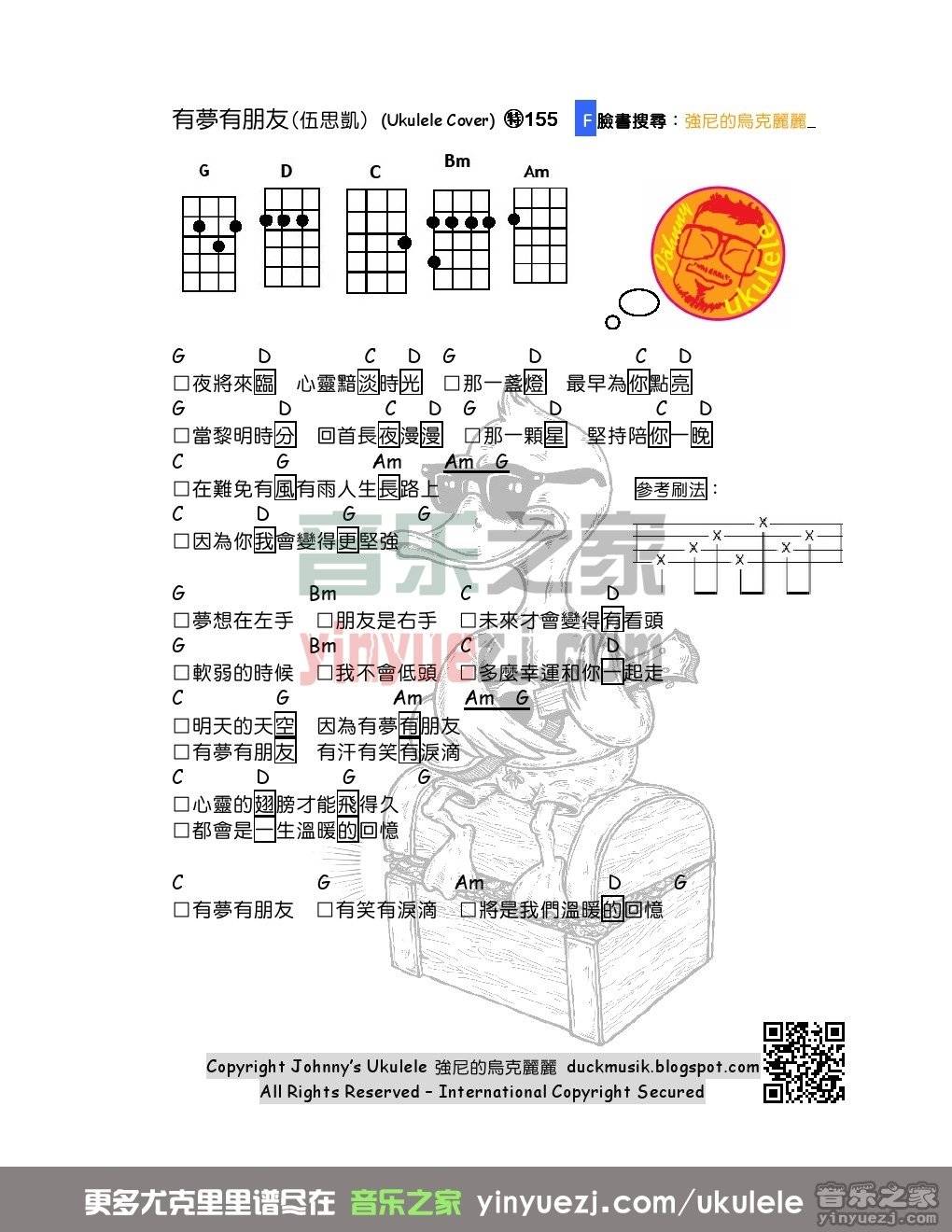 尤克里里伍思凯《有梦有朋友》尤克里里弹唱谱