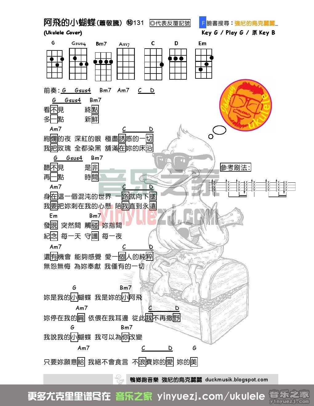 尤克里里 萧敬腾《阿飞的小蝴蝶》尤克里里弹唱谱