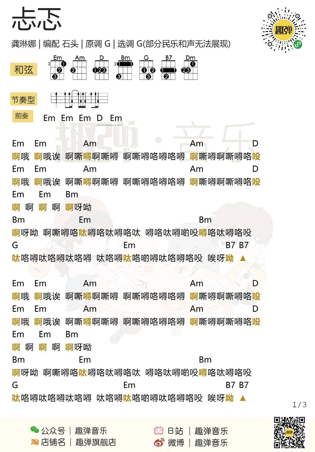 尤克里里龚琳娜《忐忑》尤克里里谱