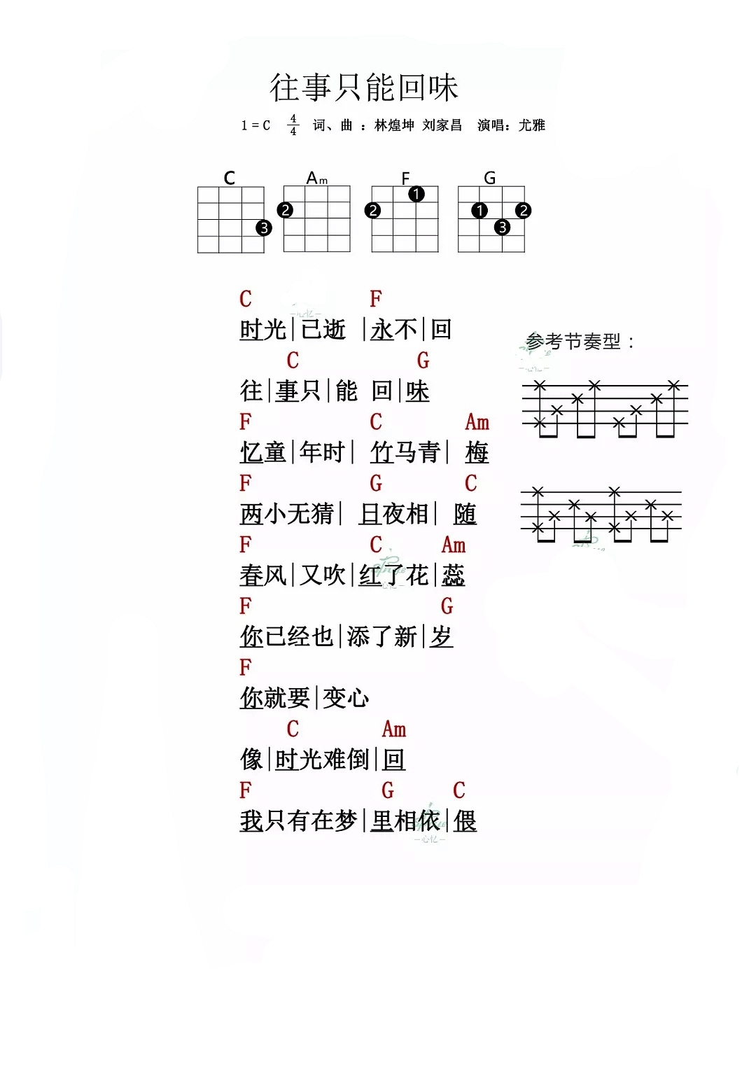 好妹妹乐队《往事只能回味》尤克里里弹唱谱...