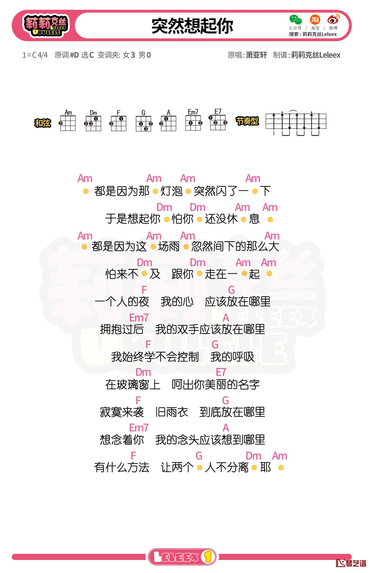 萧亚轩《突然想起你》尤克里里谱弹唱曲谱...
