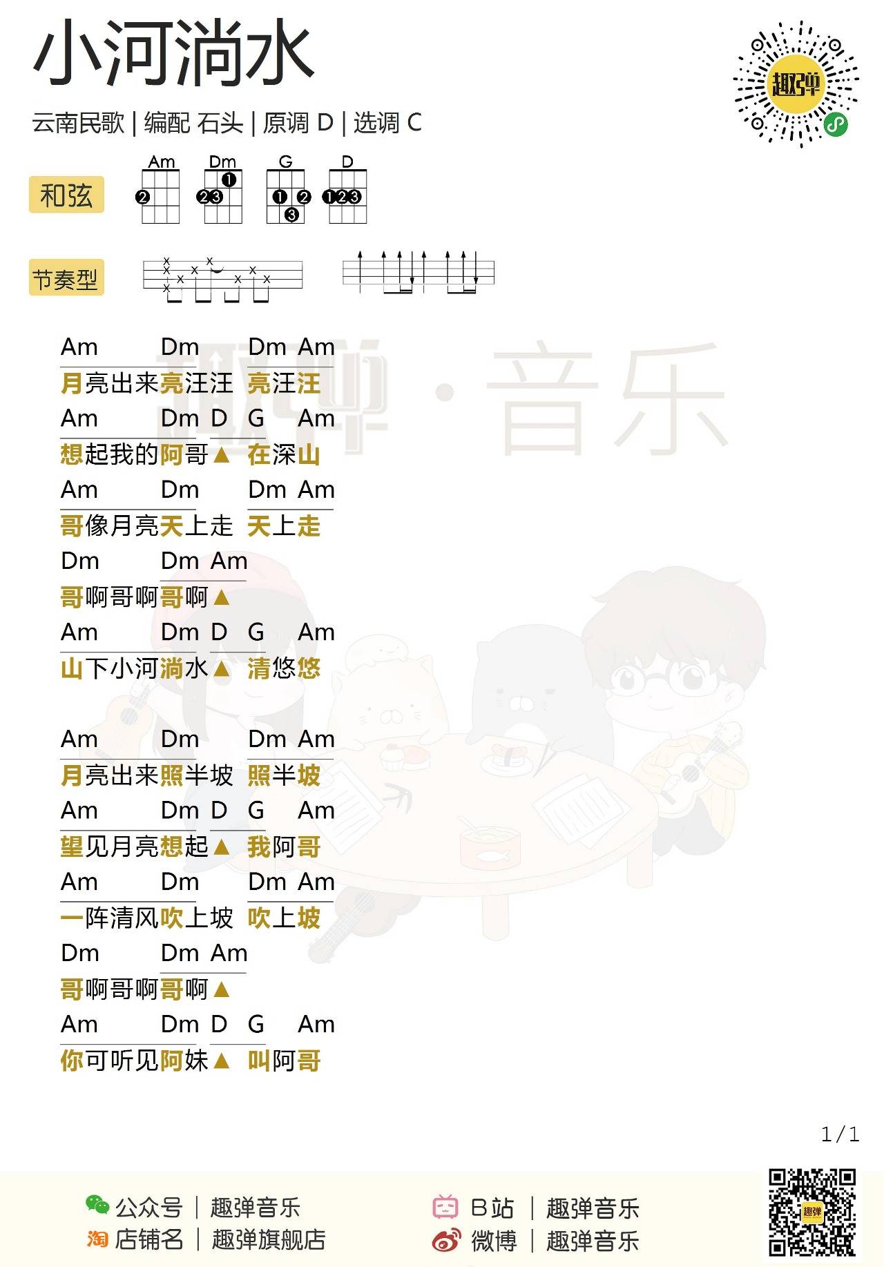 云南民歌《小河淌水》尤克里里谱_C调弹唱谱...