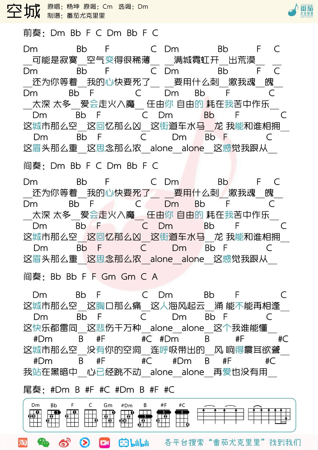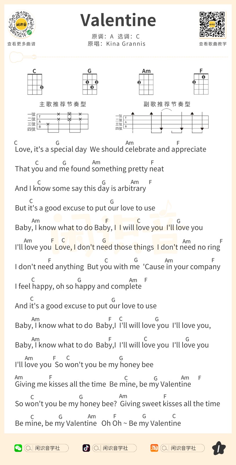 《Valentine》尤克里里曲谱C调完整弹唱...