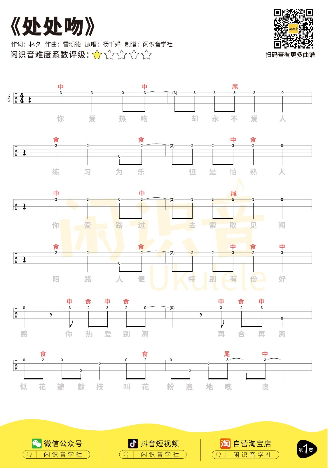 黄诗扶《杨花落尽子规啼》尤克里里谱C调完整弹唱...
