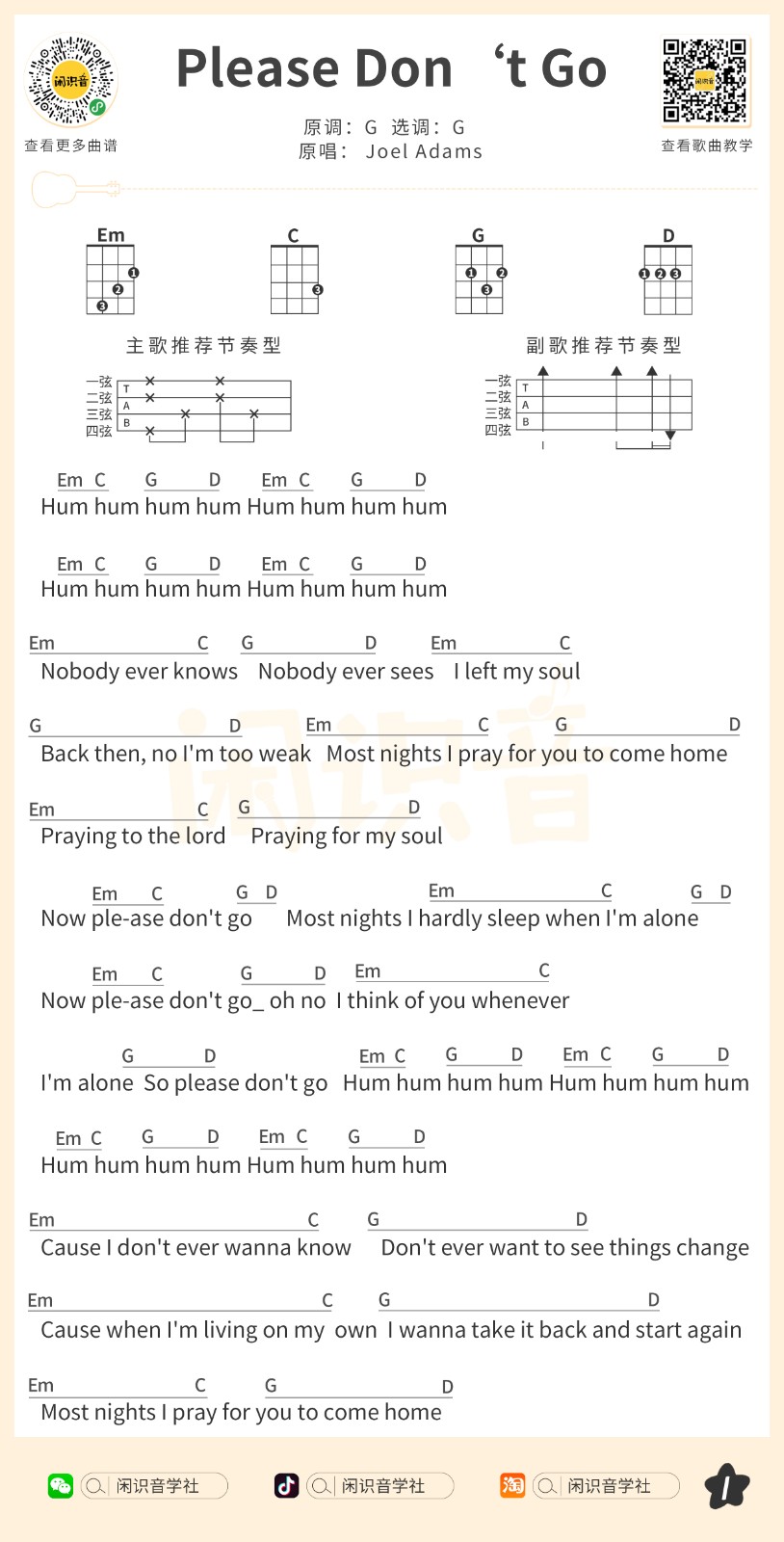 尤克里里《Please-Don‘t-Go》尤克里里曲谱G调完整弹唱