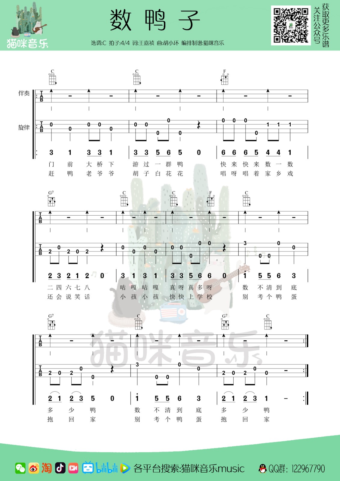 儿歌《数鸭子》尤克里里谱-C调完整弹唱...