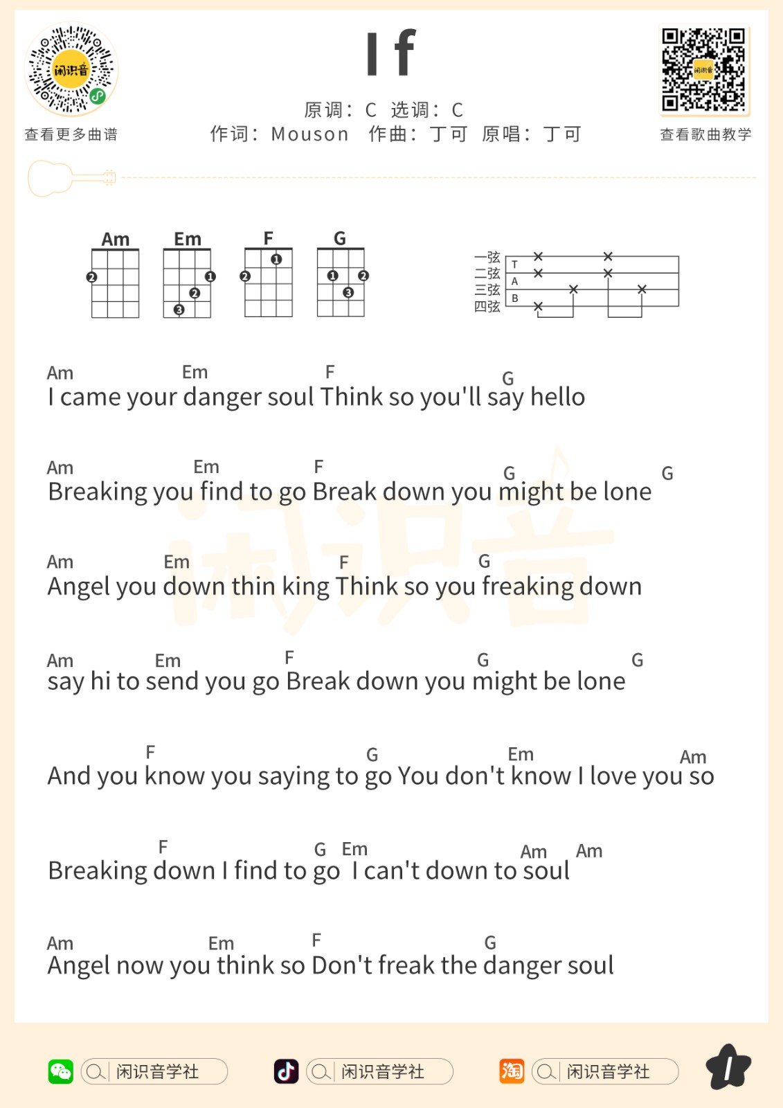丁可《If》尤克里里曲谱-C调弹唱谱...