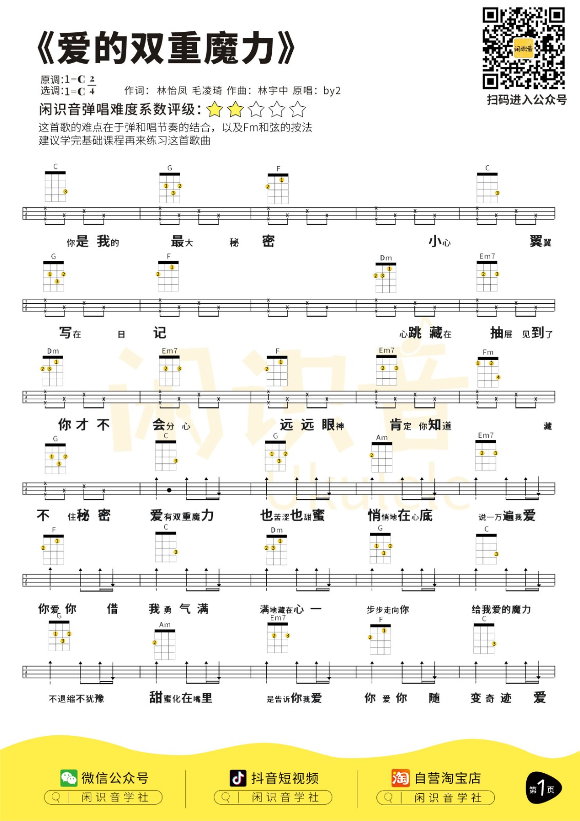 尤克里里BY2《爱的双重魔力》尤克里里曲谱-C调弹唱谱