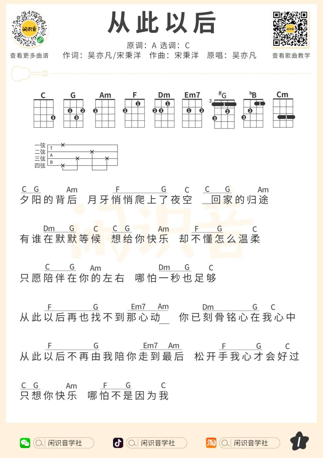 尤克里里吴亦凡《从此以后》尤克里里曲谱-C调弹唱谱