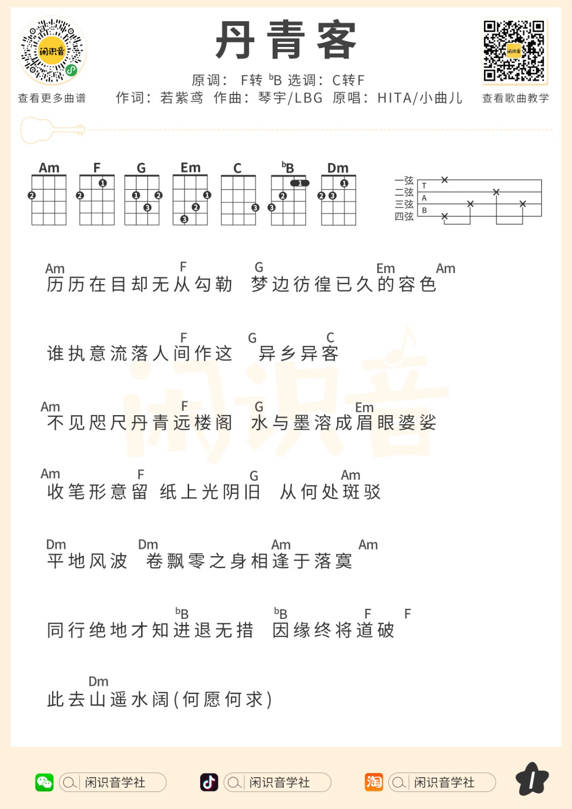 HITA/小曲儿《丹青客》尤克里里曲谱-F调弹唱谱...