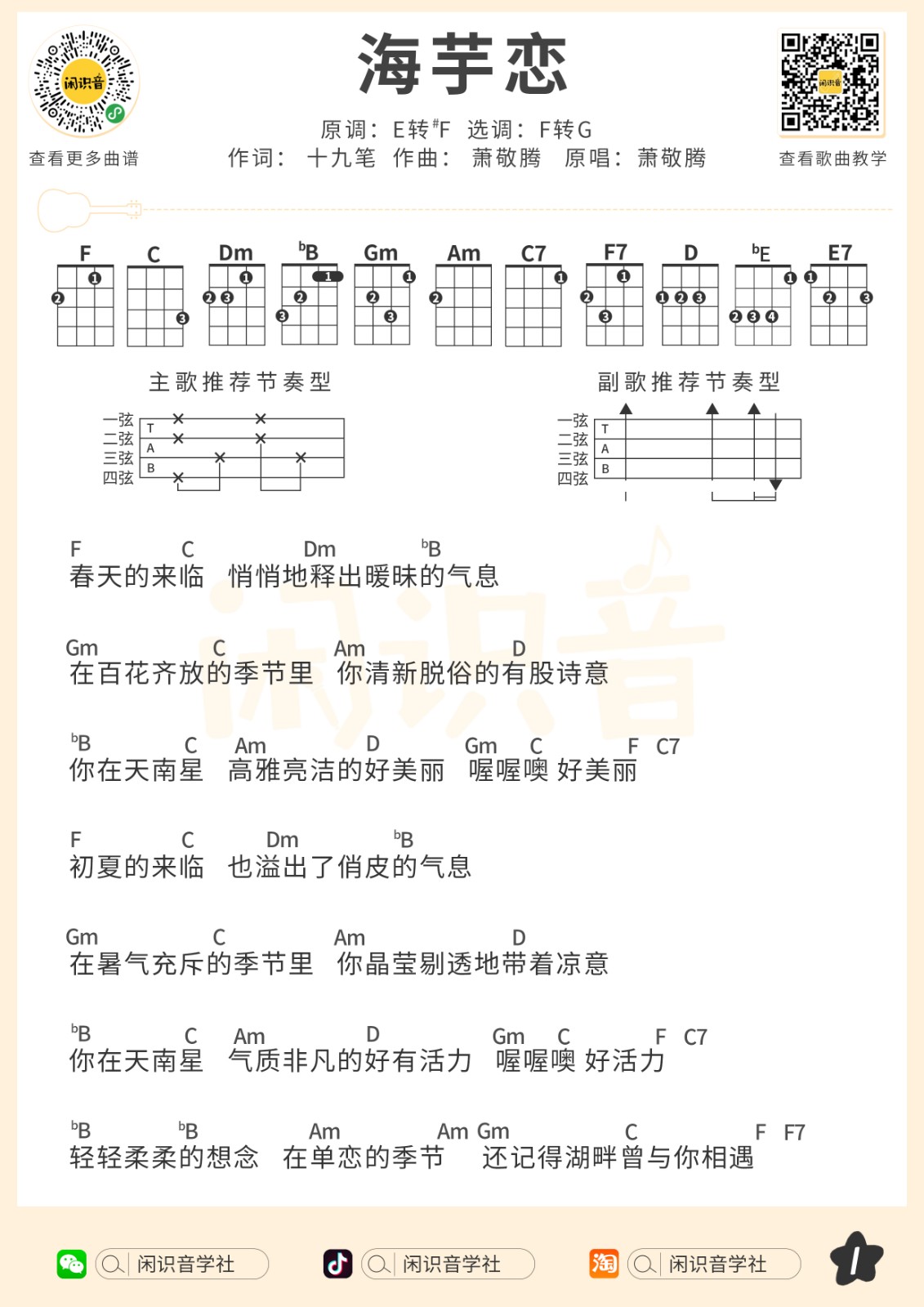 尤克里里萧敬腾《海芋恋》尤克里里曲谱-G调弹唱谱