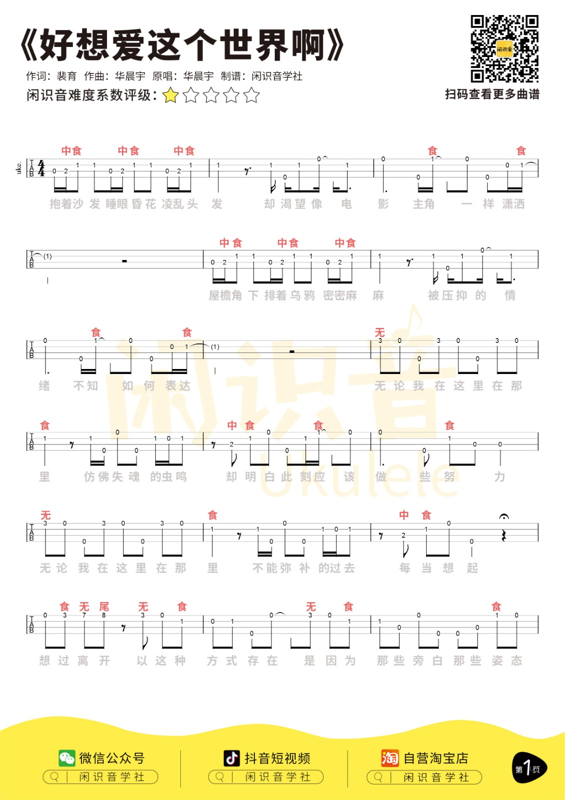 华晨宇《好想爱这个世界啊》尤克里里曲谱...