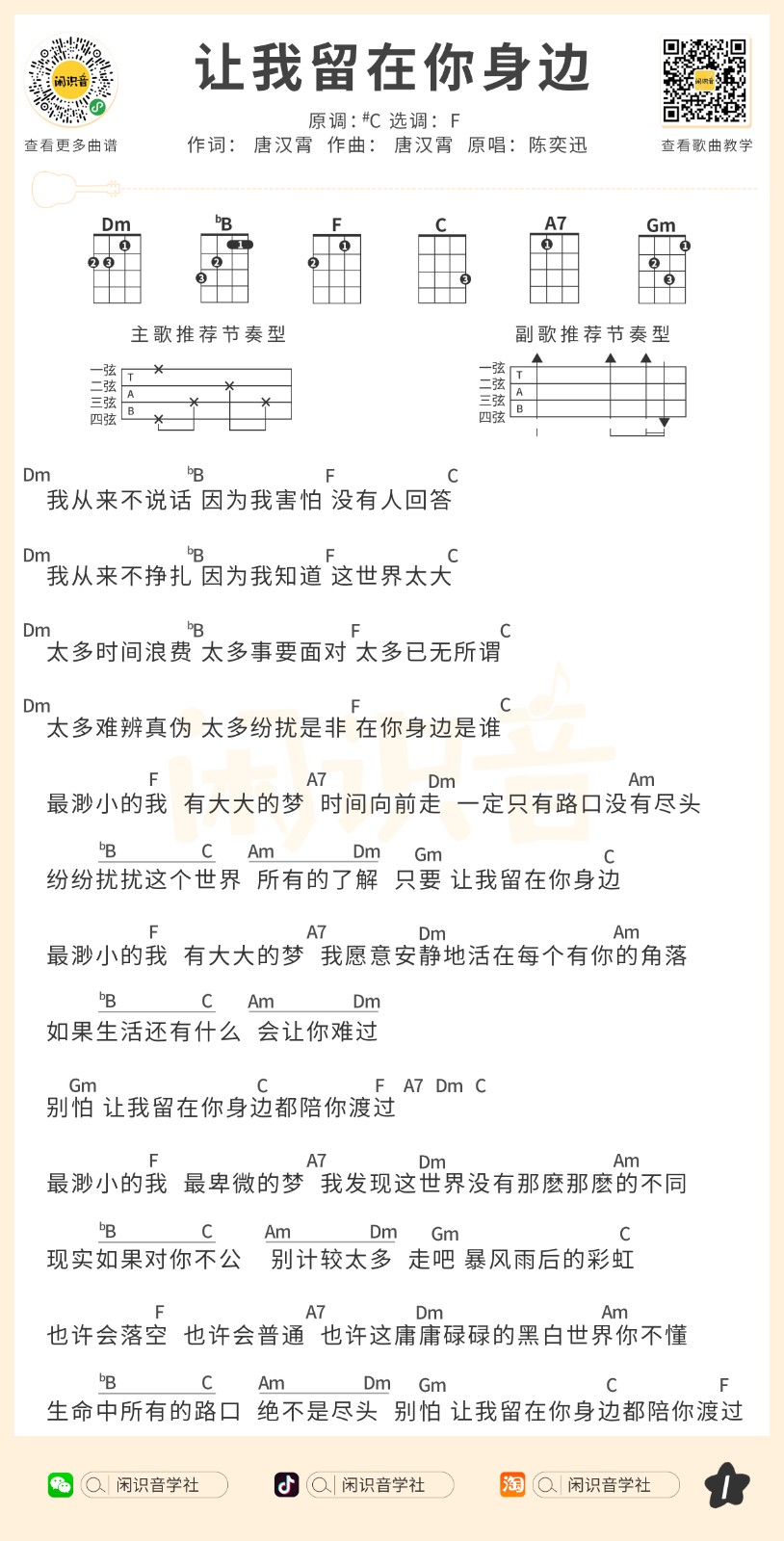 陈奕迅《让我留在你身边》尤克里里曲谱-F调弹唱谱...