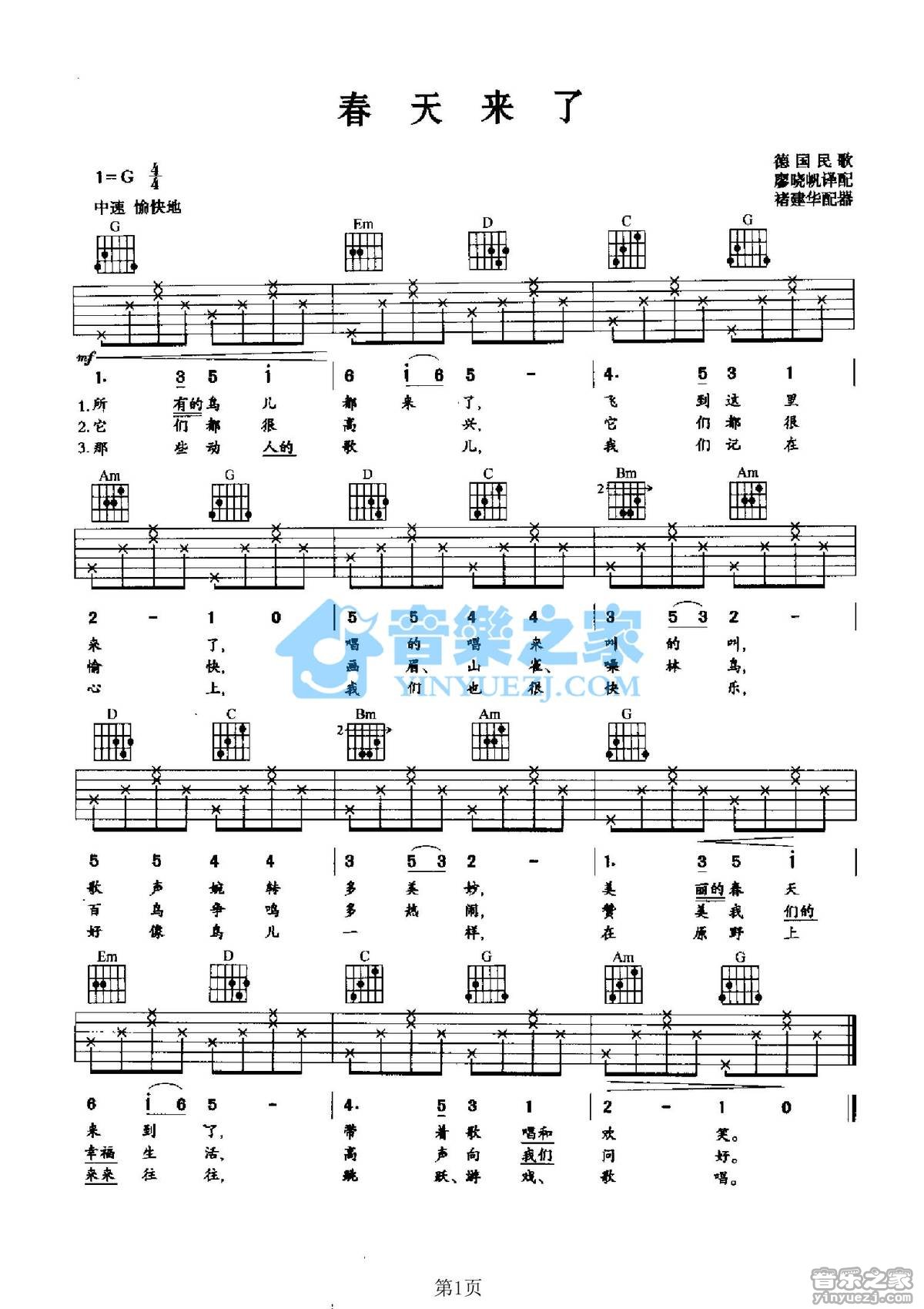 吉他德国民歌《春天来了》吉他谱_吉他弹唱谱_YYZJ编配