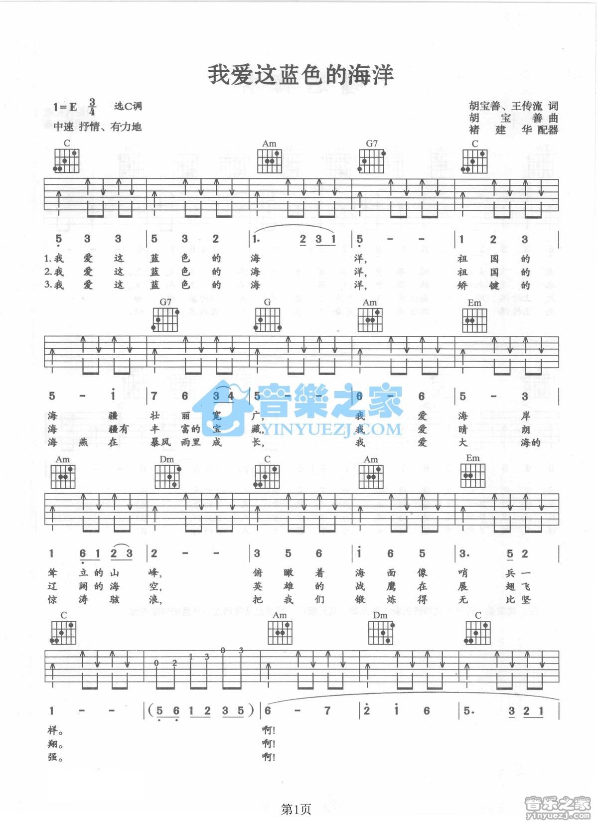 吉他军歌《我爱这蓝色的海洋》吉他谱_吉他弹唱谱