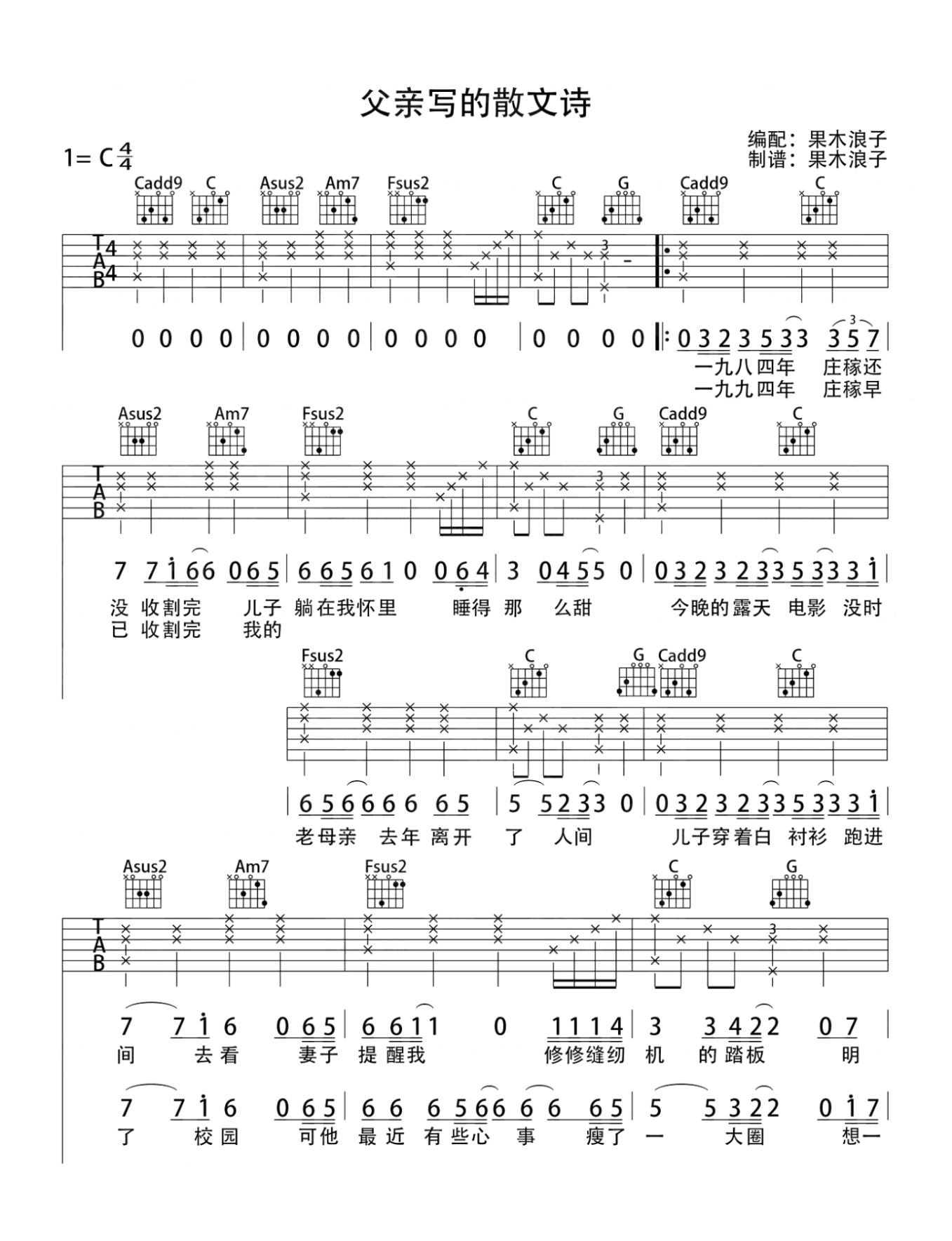 吉他许飞《父亲写的散文诗》吉他谱_吉他弹唱谱_果木浪子编配