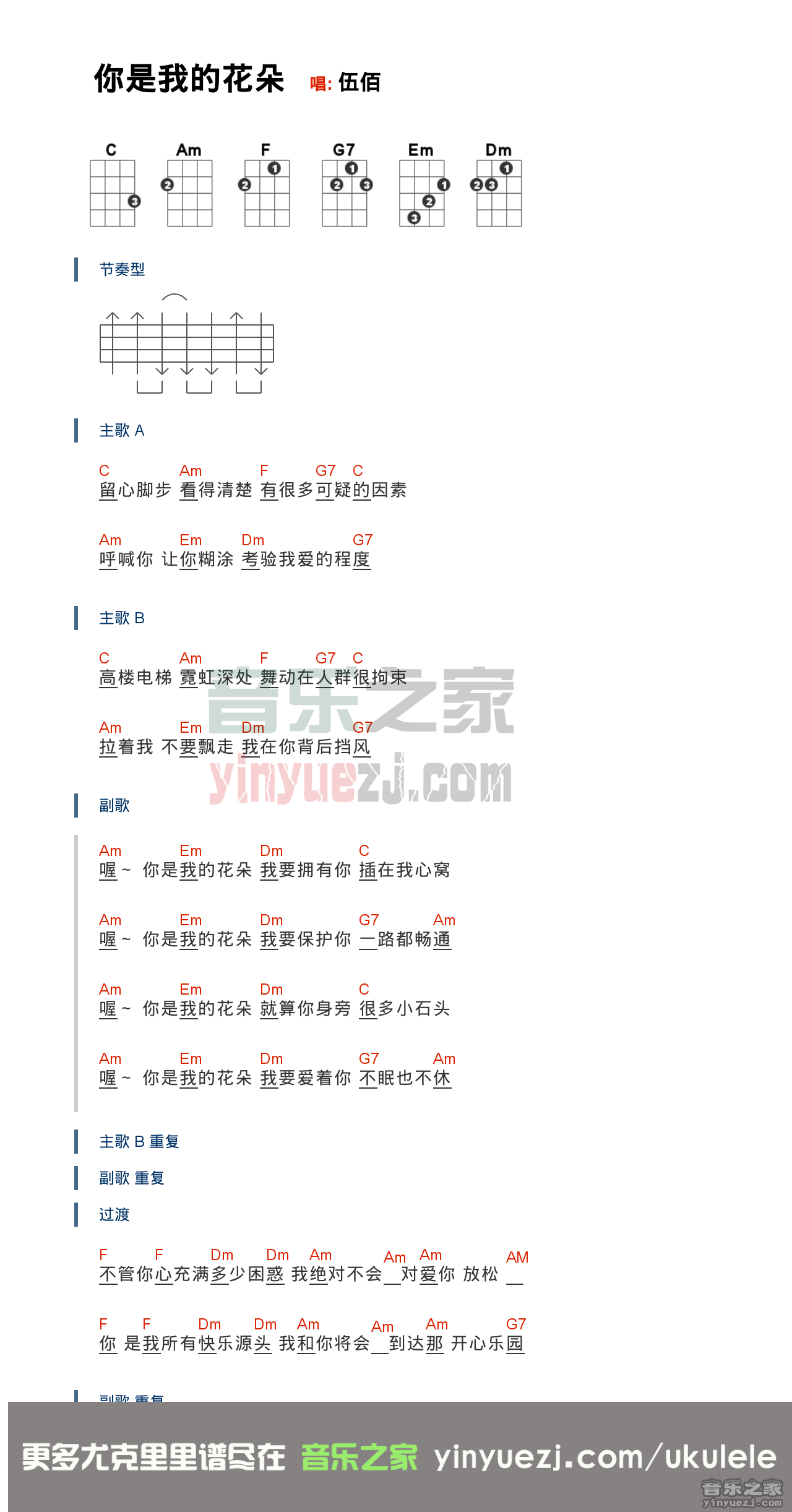 伍佰《你是我的花朵》尤克里里弹唱谱...