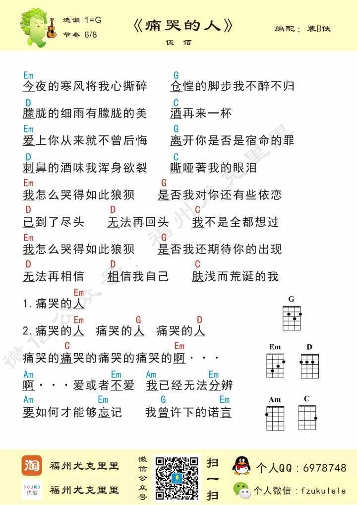 尤克里里伍佰《痛哭的人》尤克里里谱
