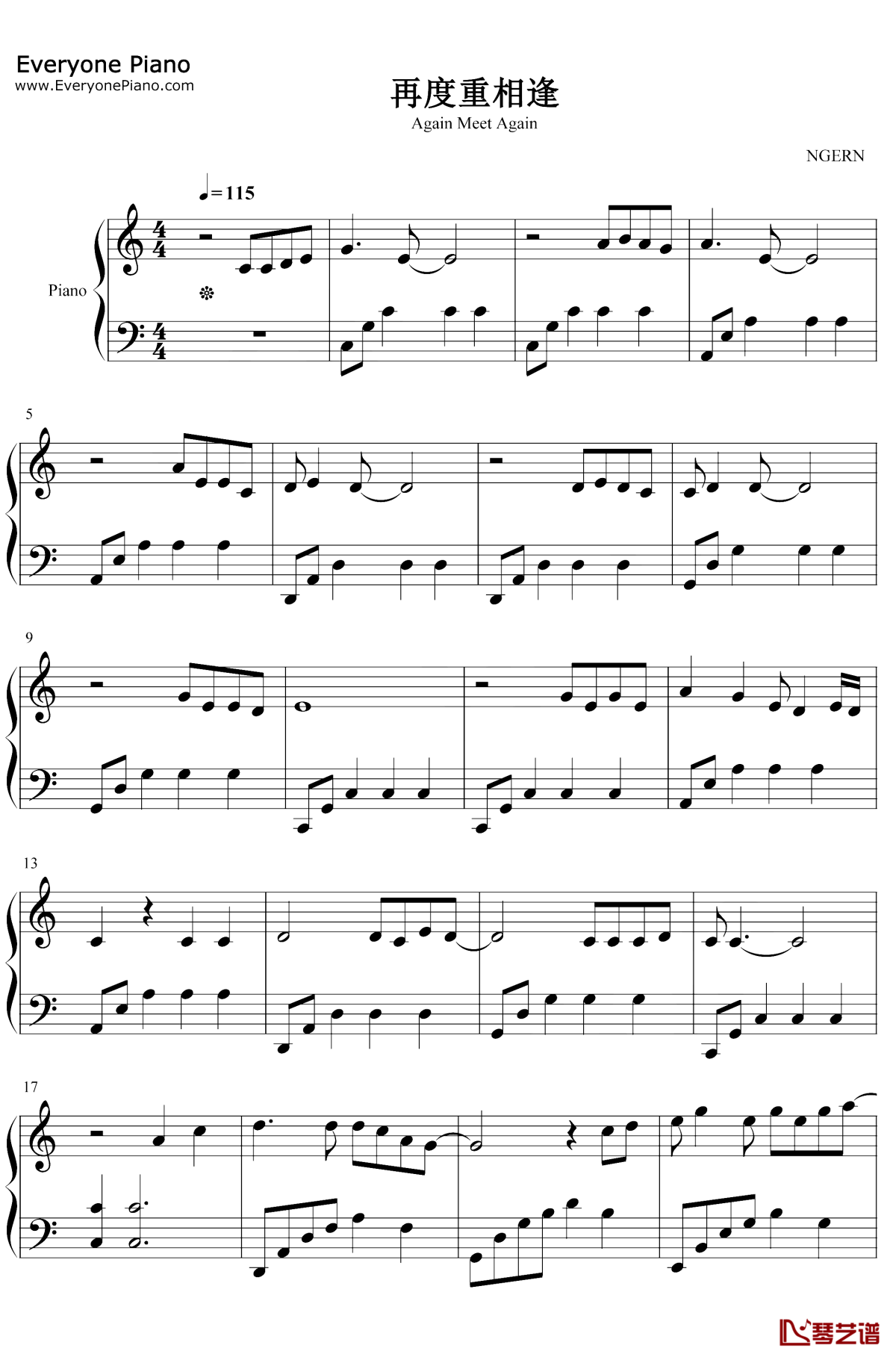 钢琴伍佰《再度重相逢》钢琴谱--C调简单版