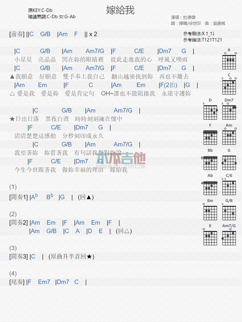 杜德伟《嫁给我》吉他谱_C调吉他弹唱谱_和弦谱...