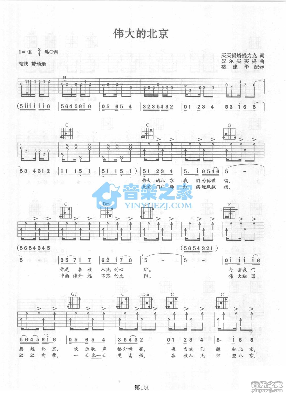 吉他李文章《伟大的北京》吉他谱_吉他弹唱谱_YYZJ编配