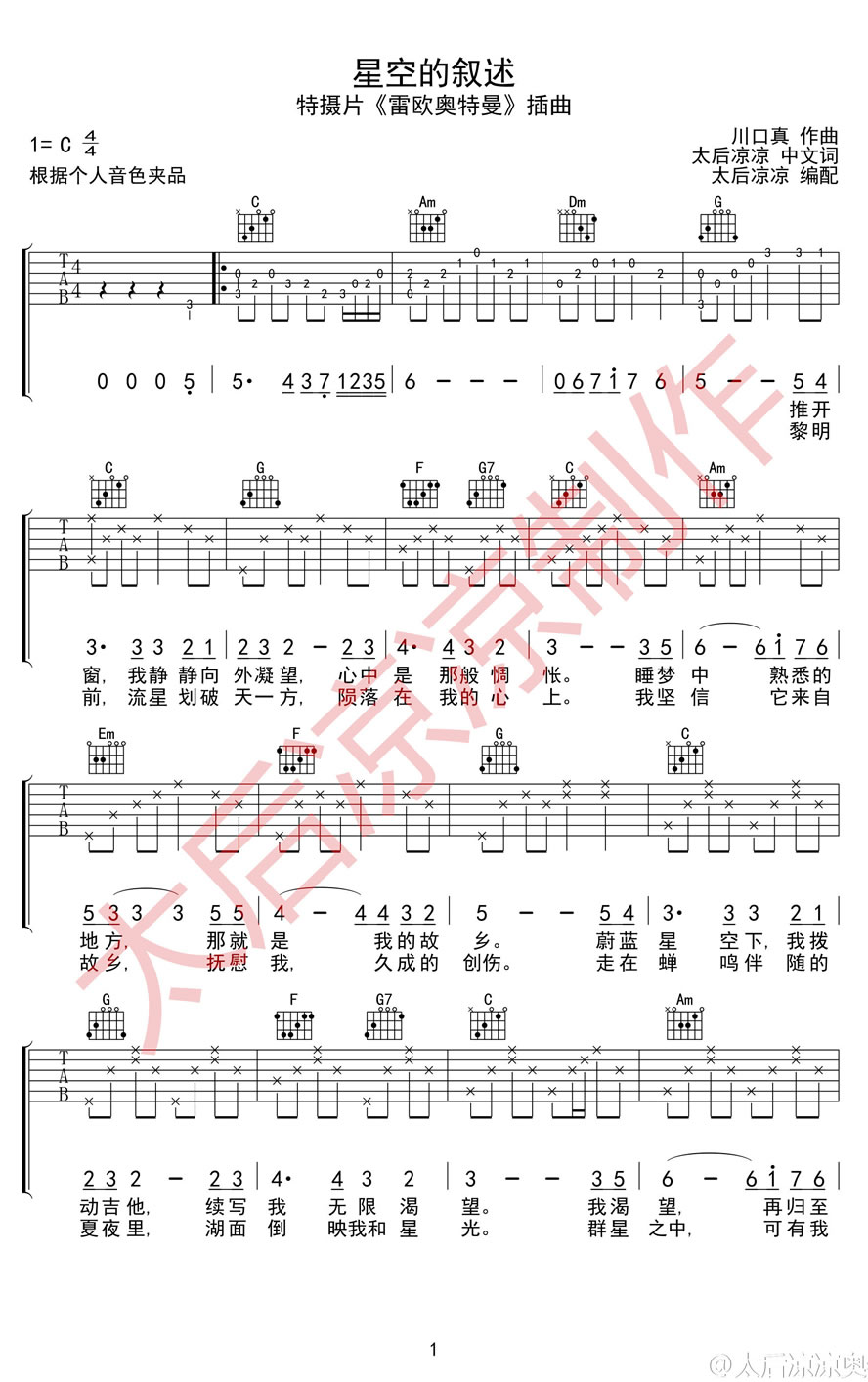 吉他《雷欧奥特曼》插曲《星空的叙述》吉他谱_吉他弹唱谱_太后凉凉编配