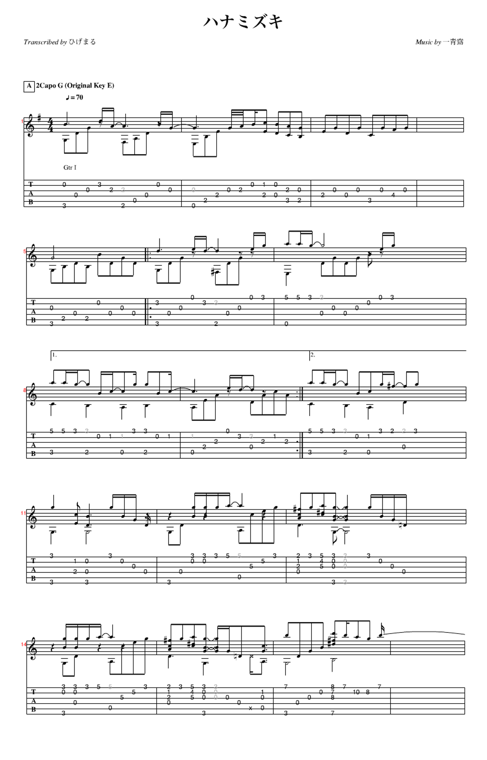 松井佑贵改编《花水木(ハナミズキ)》指弹吉他谱...