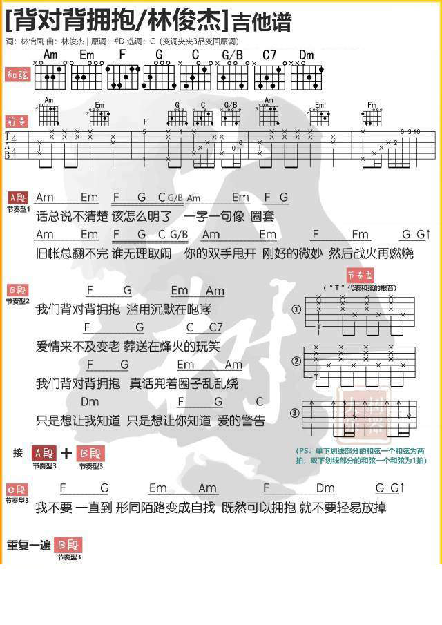 吉他林俊杰《背对背拥抱》吉他谱_吉他弹唱谱_大树音乐屋编配