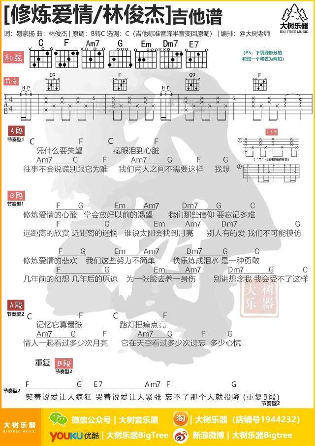 吉他林俊杰《修炼爱情》吉他谱_吉他弹唱谱_吉他专编配