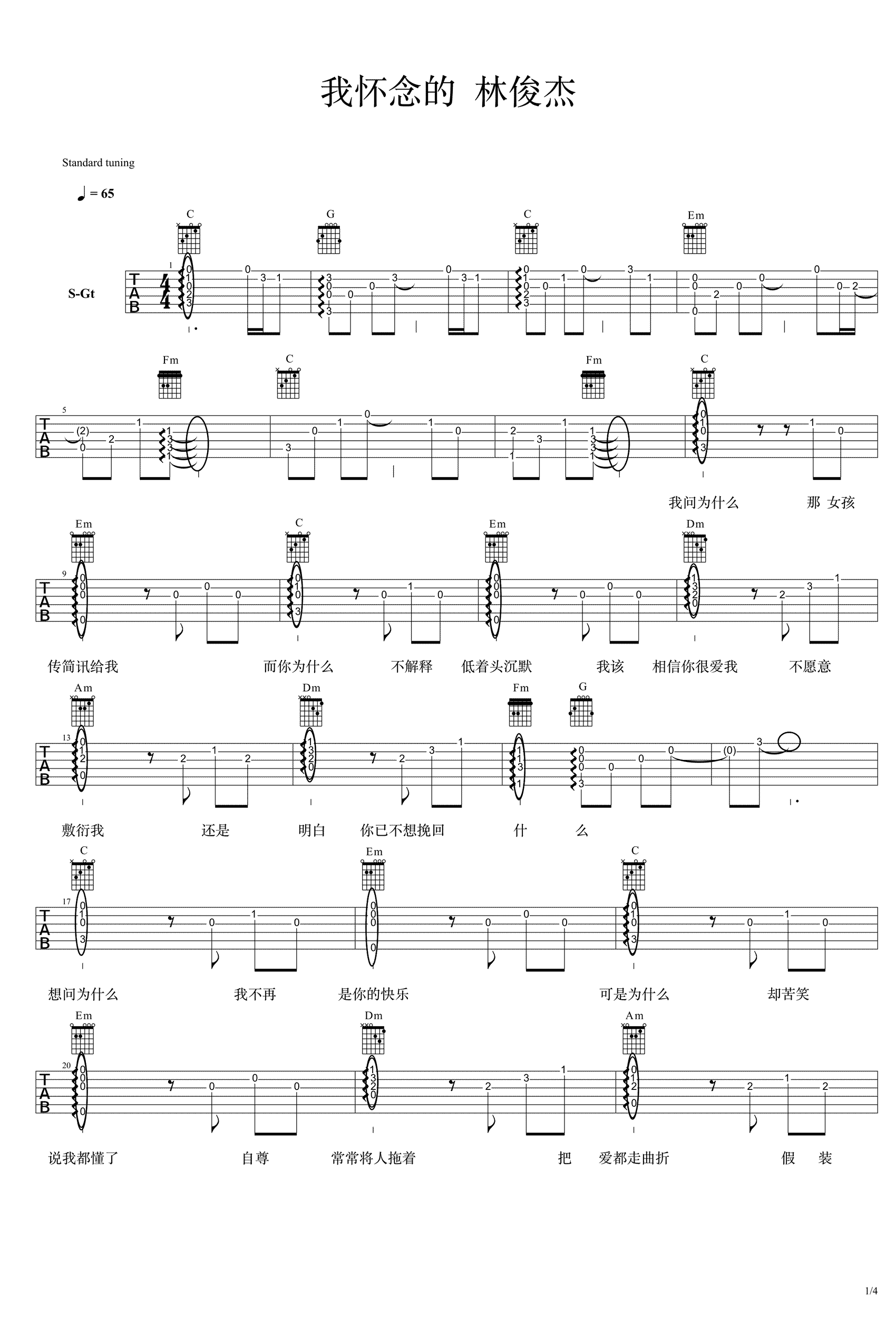 林俊杰《修炼爱情》吉他谱,共有4张高清图谱。...