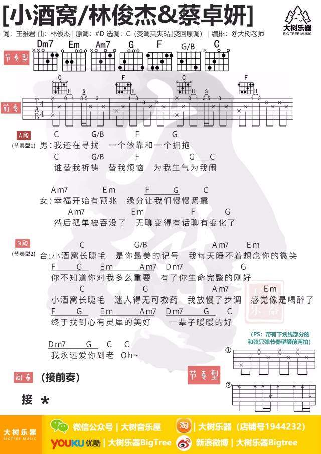 吉他林俊杰《小酒窝》吉他谱_吉他弹唱谱_大树音乐屋编配